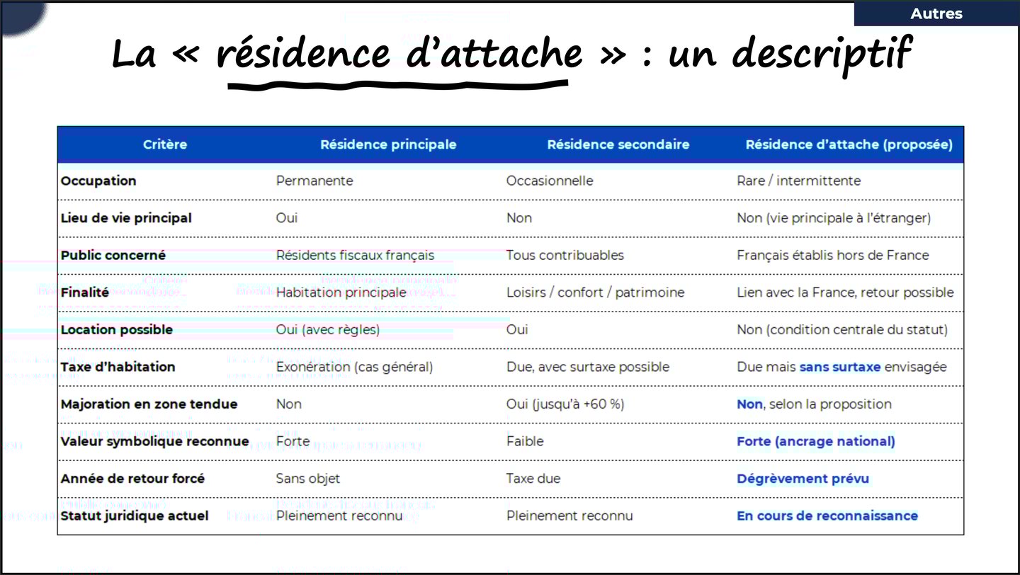 Ce bien n’est ni une résidence principale selon les règles actuelles, ni simplement une résidence secondaire, mais une situation intermédiaire qui reconnaît sa valeur particulière pour l’expatrié.