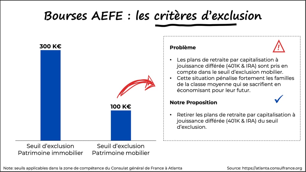 Pour les bourses scolaires, retirer les plans de retraite par capitalisation à jouissance différée (401K et IRA) du seuil d'exclusion du patrimoine mobilier, qui pénalise fortement les familles de la classe moyenne qui se sacrifient en économisant pour leur futur.